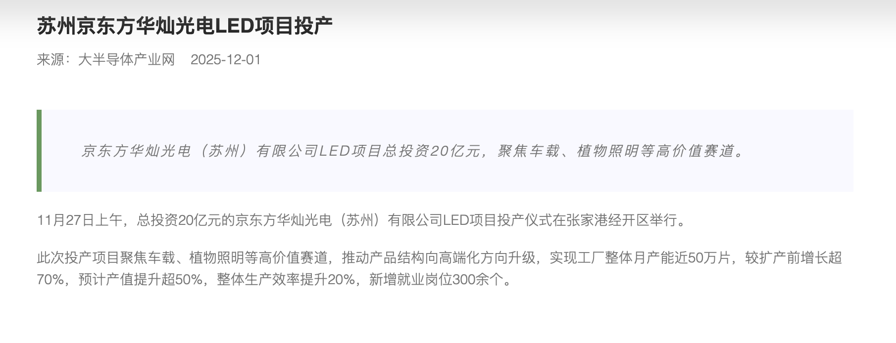 苏州京东方华灿光电LED项目投产