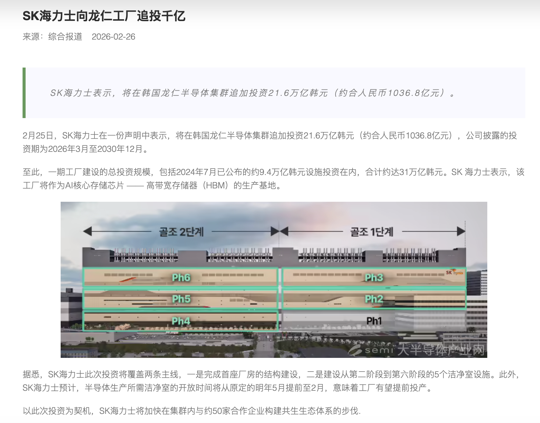 SK海力士向龙仁工厂追投千亿